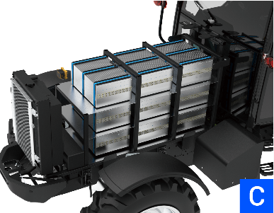 1. 专为农机研发的大容量电池包,采用高容量磷酸铁锂LFP刀片电芯,可靠性高,循环寿命长,保证充足的作业时长